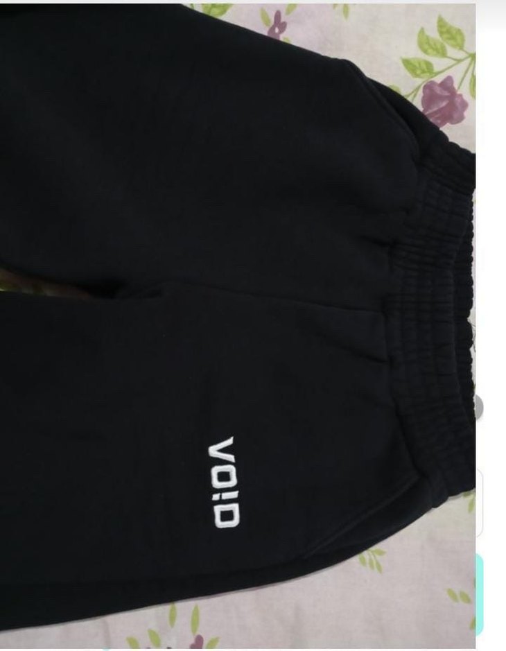 Yumuşak sentetik kumaştan, rahat kesim siyah eşofman altı. Velcro detaylı ve üzerinde 'VO!D' yazısı bulunur. Spor ve günlük kullanım için uygundur.