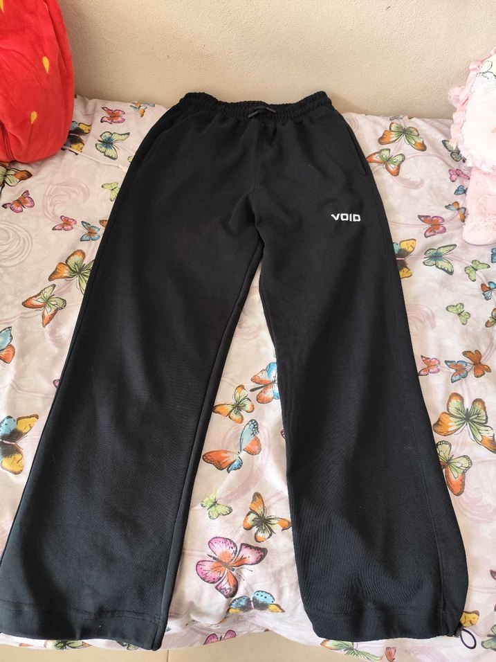 Kadınlar için siyah, rahat kesim eşofman altı, baskılı VOID logosu ayarlanabilir paçası ve arkasında bi cebi vardır 2 kez tek kullanıldı.