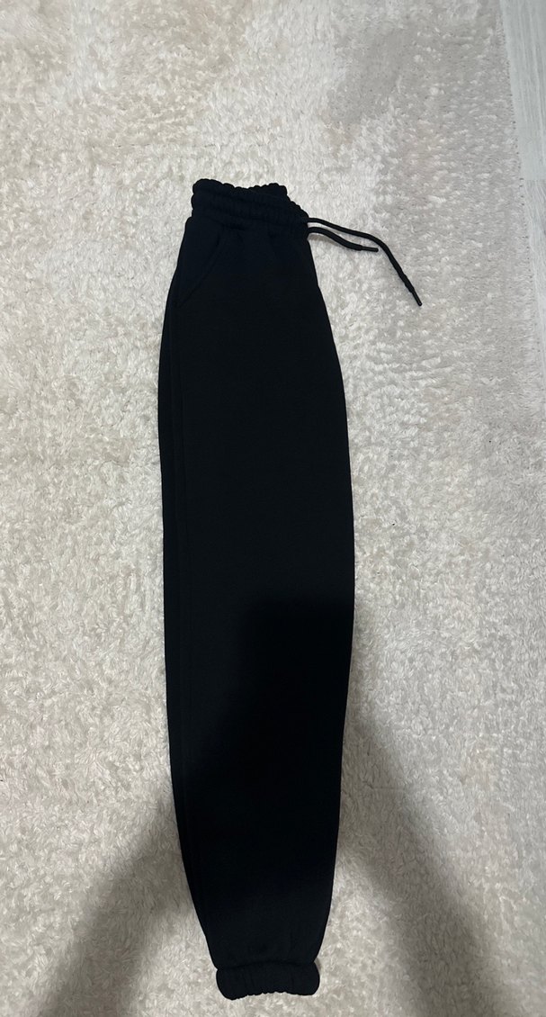 Yumuşak ve sıcak kumaştan, elastik bel bantlı, siyah rahat kesim eşofman altı, günlük kullanıma uygundur. Hiç giyilmemiştir