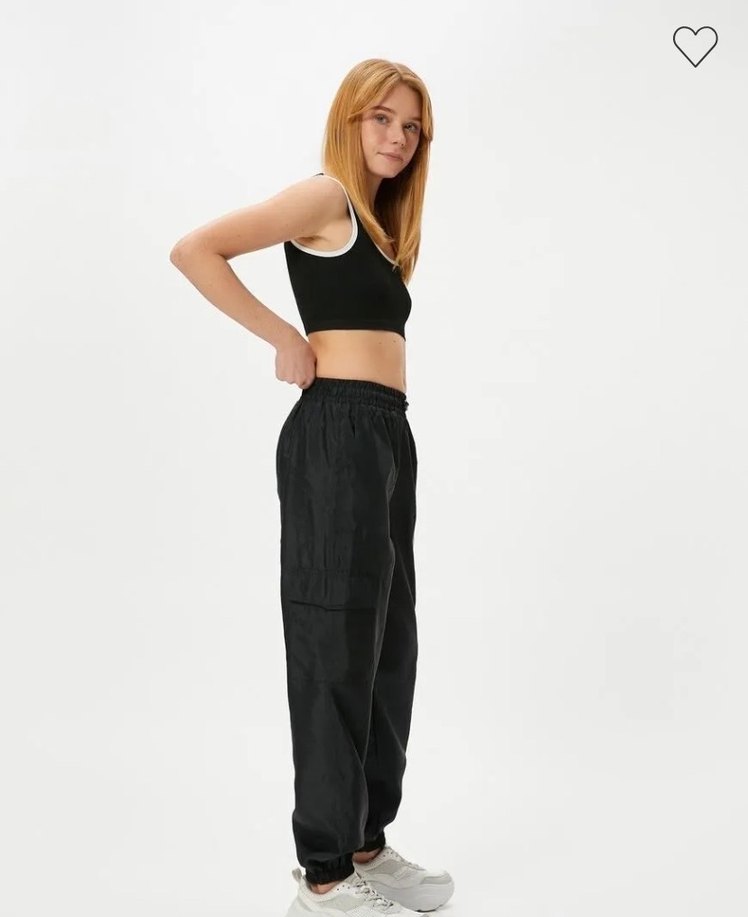 Siyah, rahat kesim boyfriend pantolon midi boyda, sentetik kumaştan üretilmiştir. Spor ve sokak stiline uygun, zahmetsiz şıklık sunar.