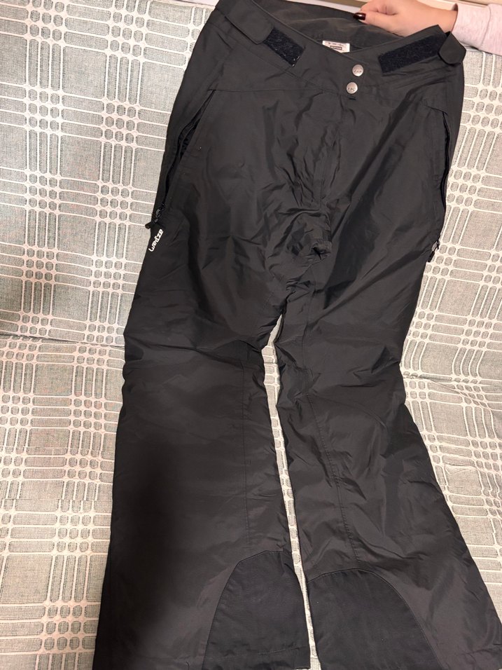 Kadın için siyah renkli, sentetik kumaştan rahat kesim kayak pantolonu. Fermuar detayları ve sokak giyimine uygun tarzıyla dış mekan kullanımı için ideal. ⛷️