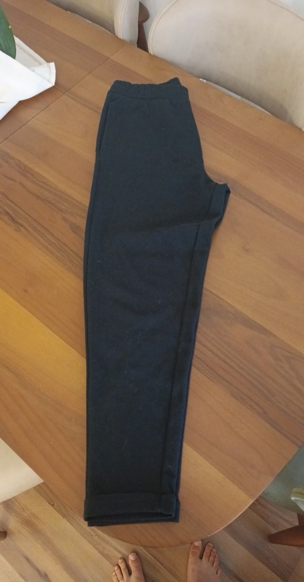 Kadınlar için siyah kumaş pantolon, rahat kesim ve normal midi boyda, yumuşak ve sıcak dokuda. Günlük kullanıma uygun, sade ve zahmetsiz şıklık sunar.