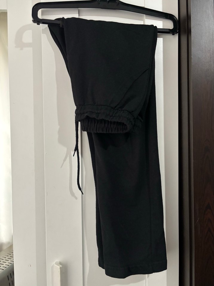 Kadınlar için siyah, rahat kesim ve midi boy kumaş pantolon. Yumuşak sentetik kumaştan, günlük kullanıma uygun sade bir sokak stili sunar.