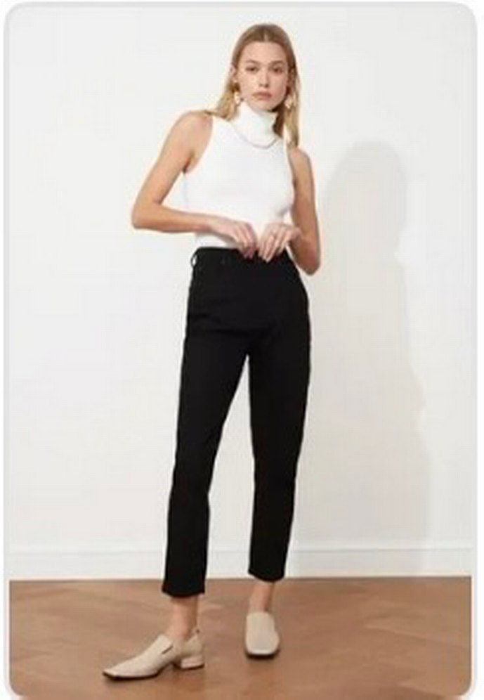 Kadınlar için regular fit, normal boyda, pamuk kumaştan yapılmış siyah cigarette pantolon. Trendyolmillaya ait.