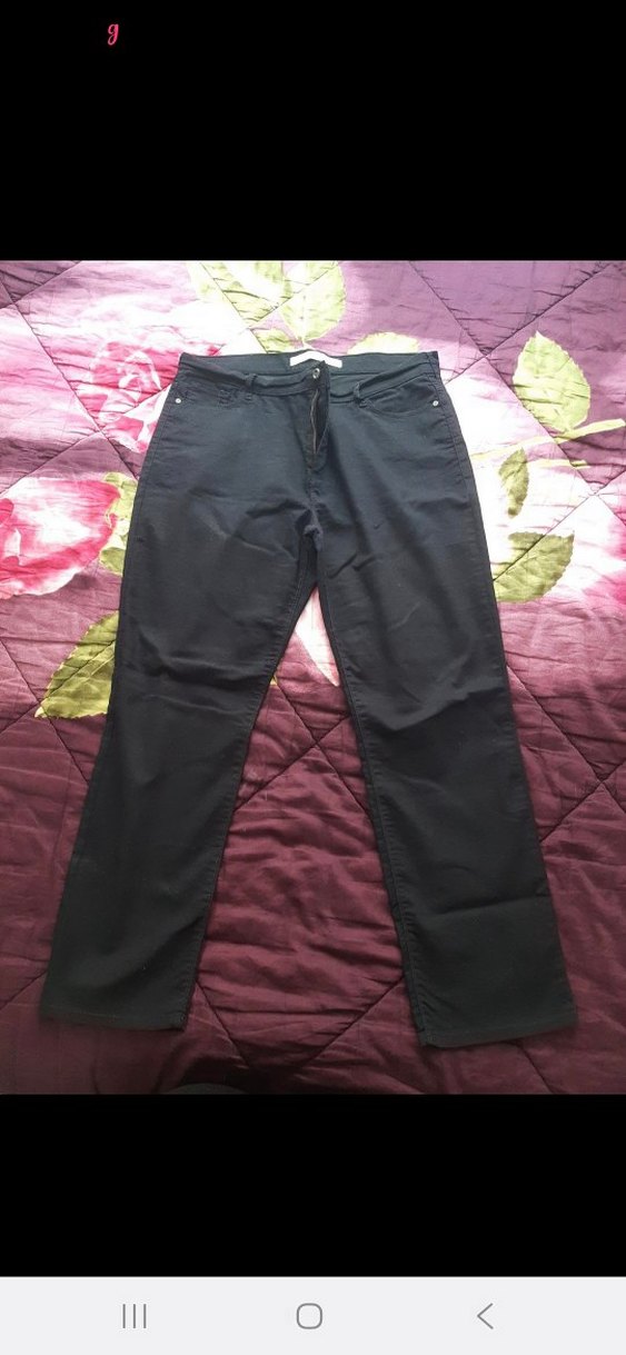 Siyah renkli, regular fit kesim kadın pantolon, sentetik kumaştan günlük rahat sokak stili için uygun. 1 kere giyilmiştir yepyeni