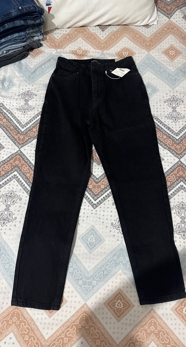 Sentetik kumaştan, regular fit ve midi boyda siyah kot pantolon. Günlük kullanıma uygun, rahat ve şık sokak stili için ideal.