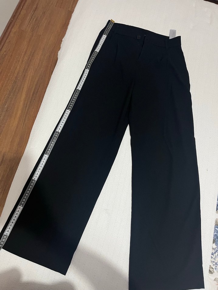 Kadın siyah pantolon, regular fit kesim, ve midi boy. Yumuşak sentetik kumaştan, günlük sokak stili için uygundur. 104 cm