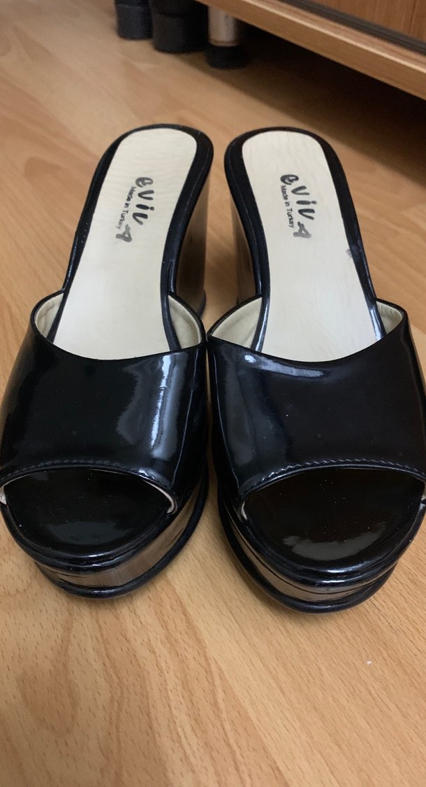 Kadın Siyah Rugan DolguTopuklu Terlik