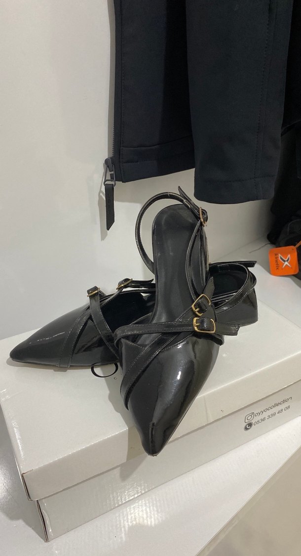 Kadın Siyah Rugan Stiletto Tokalı Ayakkabı