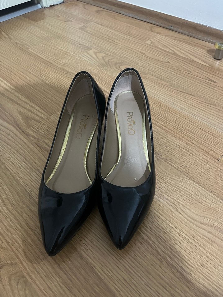Siyah rugan malzemeden yapılmış, klasik ve desensiz stilettolar, ofis kullanımı için uygundur.