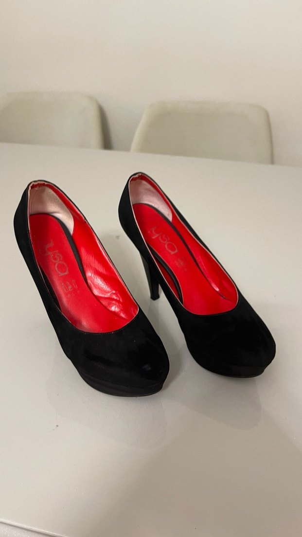 İç kısmı kırmızı, dışı siyah rugan parlak stiletto topuklu kadın ayakkabı, cesur gotik tarz için uygundur.