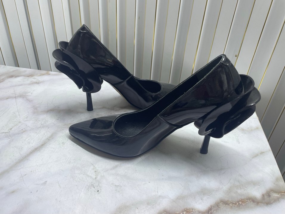 Rugan görünümlü siyah stiletto topuklu ayakkabılar, lastik malzemeden, ofis kullanımı için uygun sade ve parlak tasarım sunar. Paris tarzı klasik şıklık içerir.