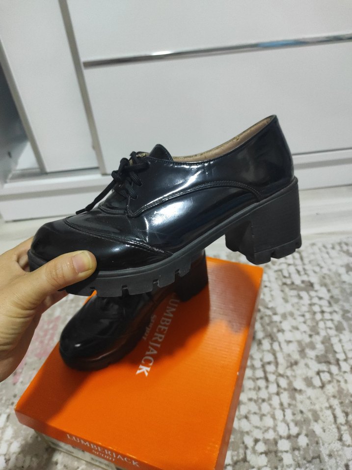 Kadınlar için siyah rugan klasik ayakkabı, kalın topuklu ve tokalı detaylıdır. Ofis ve gotik tarzına uygundur. Mat ve desensiz tasarım. küçük deformesi mevcuttur ..fiyat o sebeple uygun tutulmustur