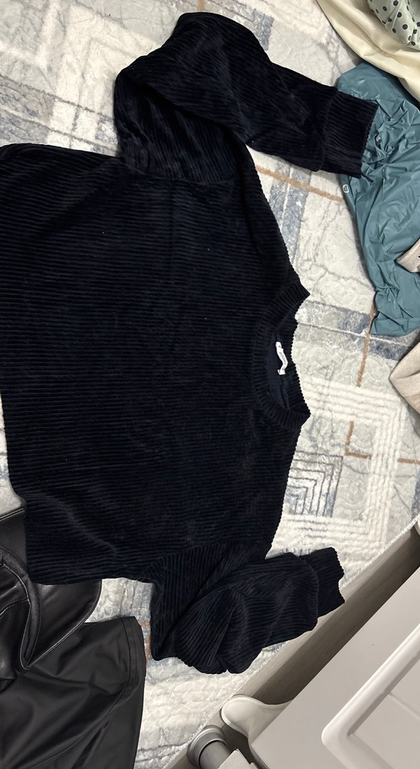 Kadınlar için uzun kollu, yuvarlak yakalı, salaş kesim lacivert bluz. Yumuşak sentetik kumaştan yapılmış, normal boyda ve rahat bir görünüm sunar.