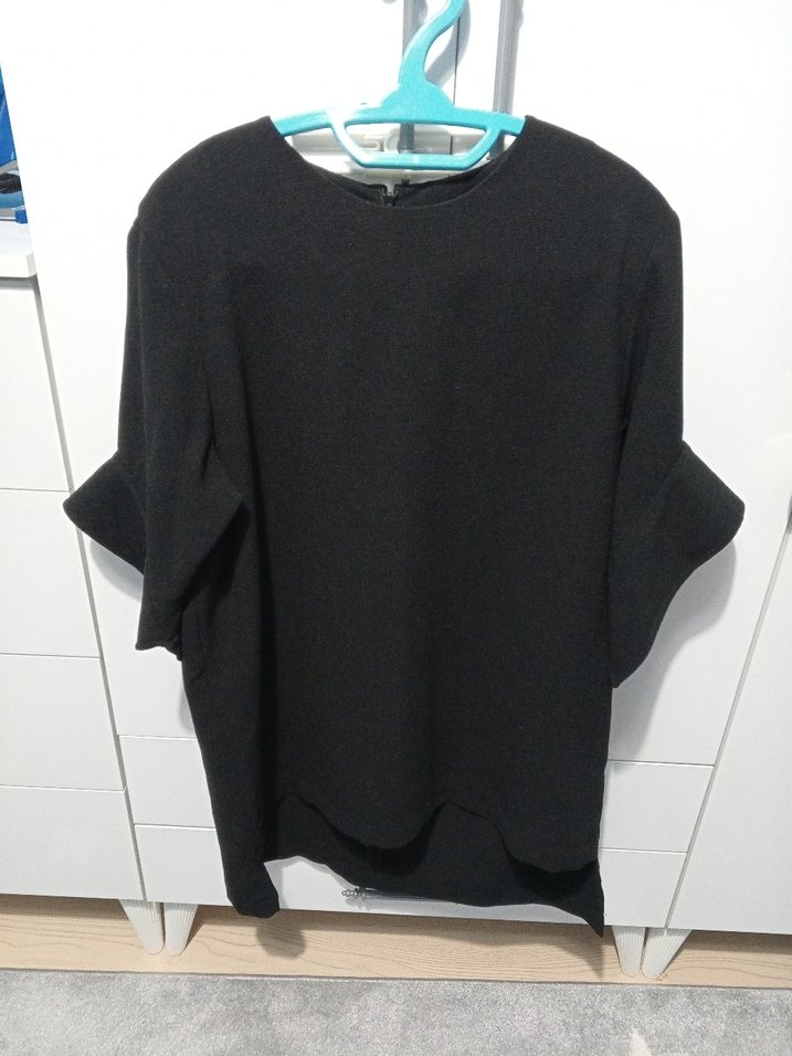 Yumuşak ve sıcak kumaştan, salaş kesim, yuvarlak yaka ve uzun kollu siyah bluz. Minimalist, desensiz tasarım, ofis için uygun.içi astarlı m. l için uyumlu✨