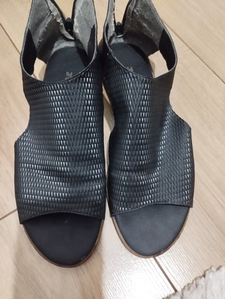 Bu siyah sandaletler, tokalı tasarımı ve dokulu kauçuk üst yüzeyi ile günlük kullanıma uygun minimalist bir tarza sahiptir. iki kere giyildi