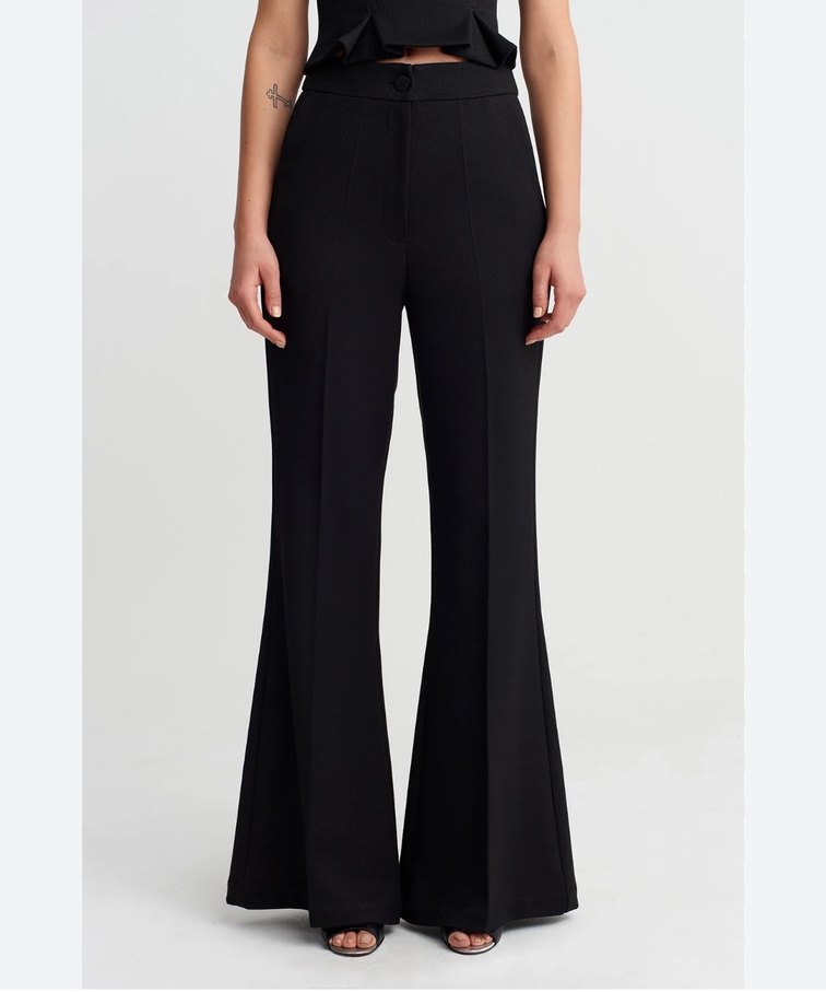 Kadın Siyah Silky Kumaş Ofis Pantolonu