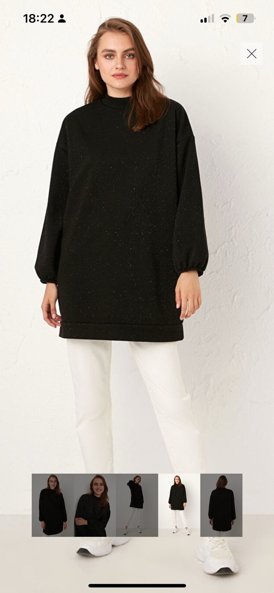 Kadın Siyah simli Pamuklu Salaş Midi Tunik