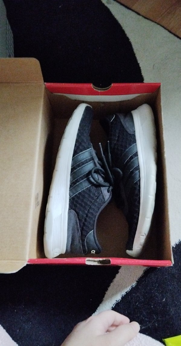 Kadın siyah spor ayakkabılar, düz kauçuk taban ve elastik detaylara sahip, spor ve sokak stili için uygundur. Gri tonlarda desen içermeyen sade tasarım. ADİDAS. 38 NUMARA. yırtık yokk