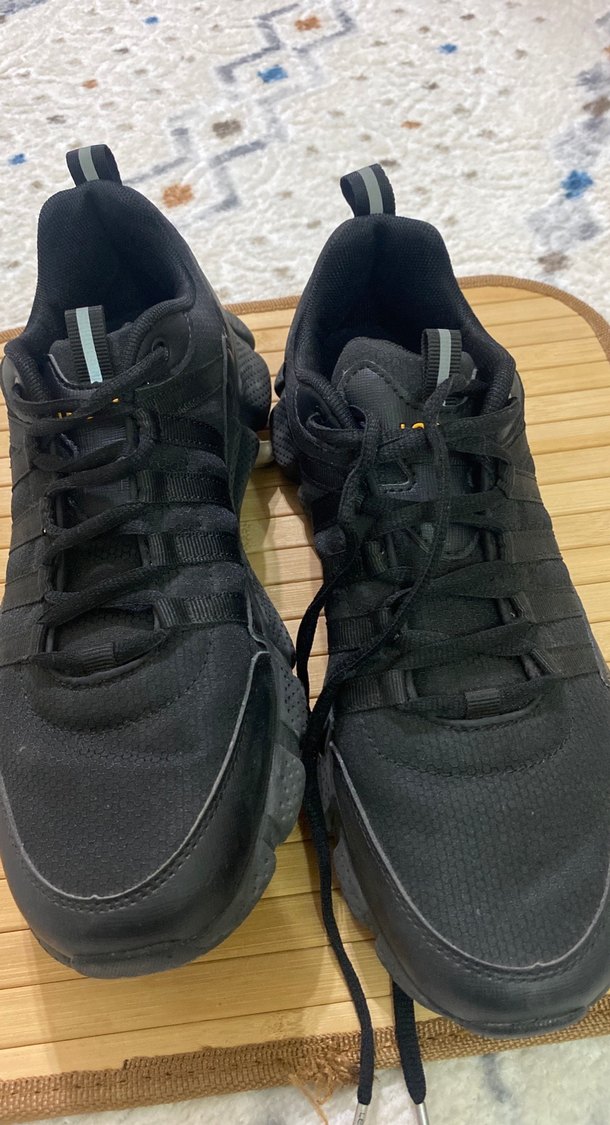 Kadın spor ayakkabılarında kullanılan siyah bağcıklar, sağlam ve şık bir bağlama sağlar.