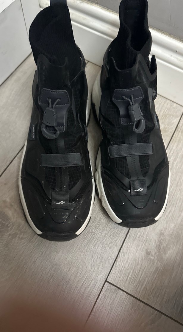 Kadın siyah spor ayakkabılar, lastik malzeme ve Velcro bantlara sahip. Düz tabanlı, sportif ve sokak tarzına uygun tasarım.