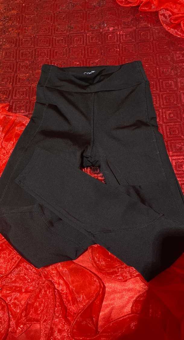 Kadınlar için siyah, sentetik kumaştan üretilmiş, Velcro detaylı, normal midi boyda, spor ve streetwear tarzına uygun tayt.