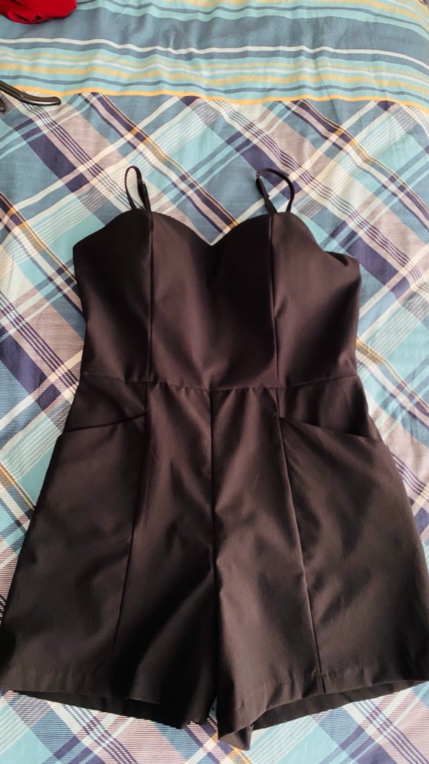 Kadınlar için straplez yaka ve ince askılı, tokalı detaylı siyah, dar kesim midi tulum. Sade ve şık sokak stili, günlük kullanım için uygundur. ✨