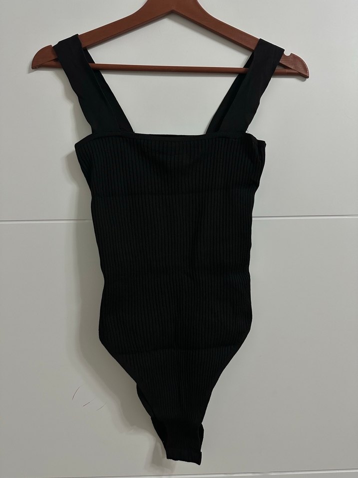 Strappy askılı, siyah renkte, midi uzunlukta ve vücuda oturan bu mayo gündelik kullanıma uygun, cesur ve rahat bir sokak tarzı sunar.