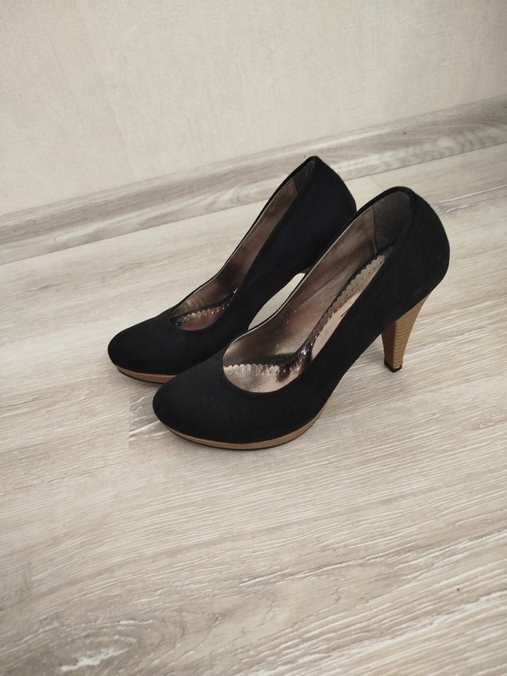 Siyah süet stiletto topuklu ayakkabılar, modern klasik tasarıma sahip, şık ve zahmetsiz şıklık sunan ofis için uygun.