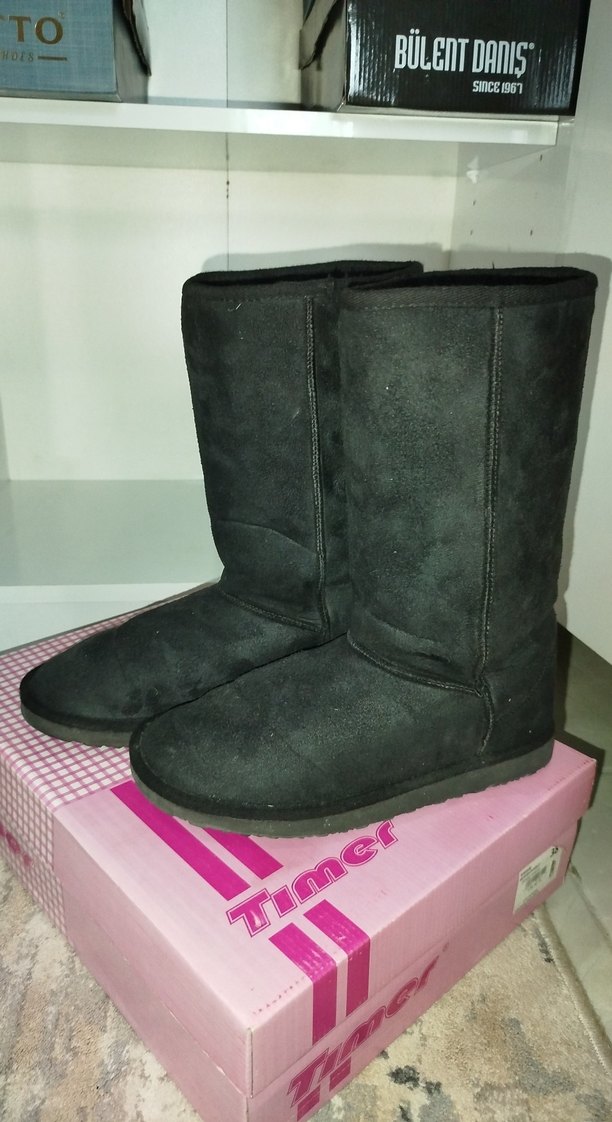Siyah süet kadın diz altı Ugg bot, rahat ve gotik tarzda günlük kullanım için uygundur. Sayılı giyildi temiz sorunsuz 1 tanesinin için topuk kısmında çok az aşınma var fotoğraf ekledim kullanıma engel değil marka temsilidir