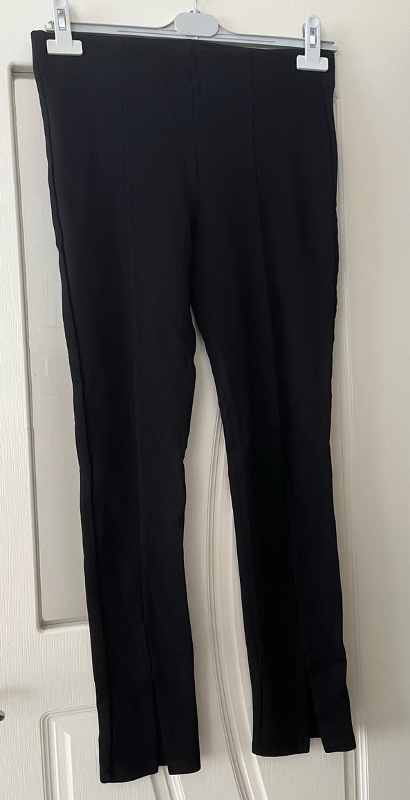 Likralı esnek bir kumaş. Tayt pantolon denilebilir. Bir iki kez giyildi. Baya yeni. Rahat ve şık bir pantolon
