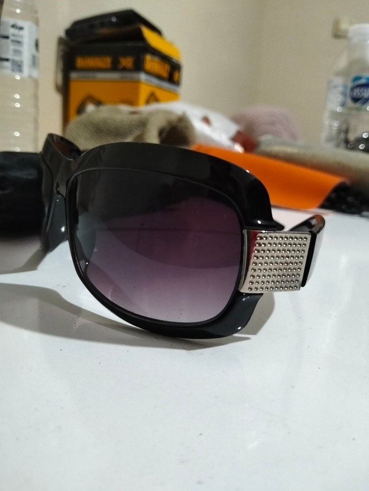 Tokalı siyah biker tarzı kadın güneş gözlüğü, renkli detaylarla trendy casual stil için uygun. Not: Büzgülü kılıfıyla gönderilecektir. ️