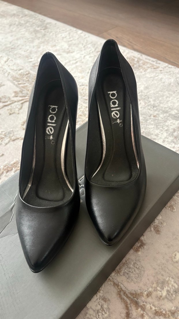 Siyah tokalı stiletto topuklu, kauçuk malzemeden yapılmış. Cesur ve gotik tarzda, iş ortamı için uygun, desensiz tasarım. 1 kere kullanıldı