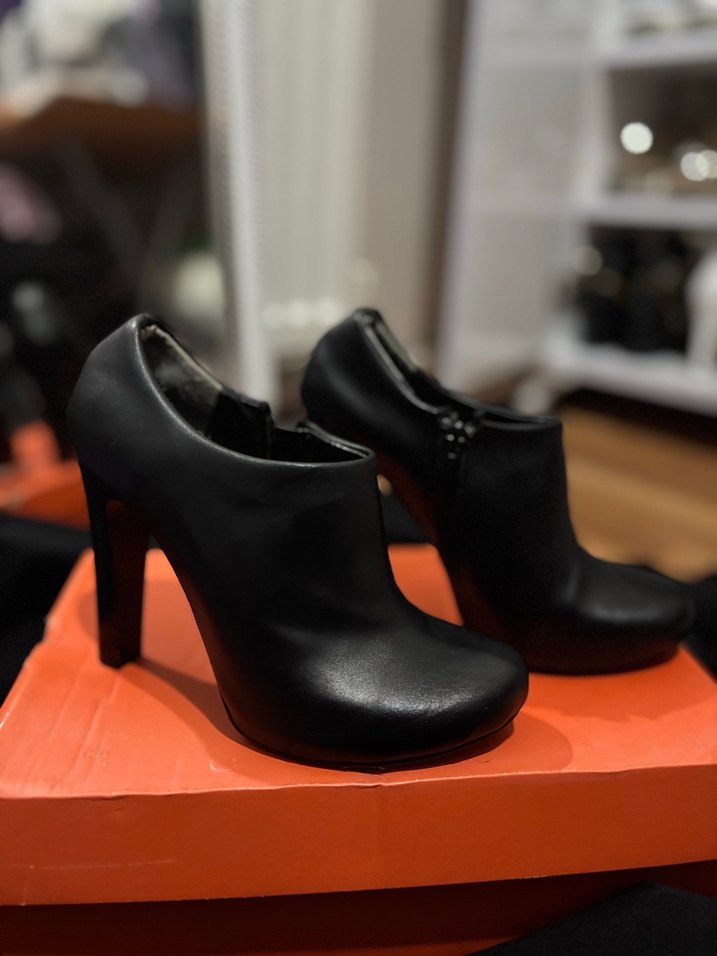 Kadınlar için siyah topuklu botlar, detaylarıyla klasik goth stilini cesur ofis görünümüyle birleştirir. Hiçbir sorunu yoktur Doğan çantadan alında gayet kaliteli bir üründür.