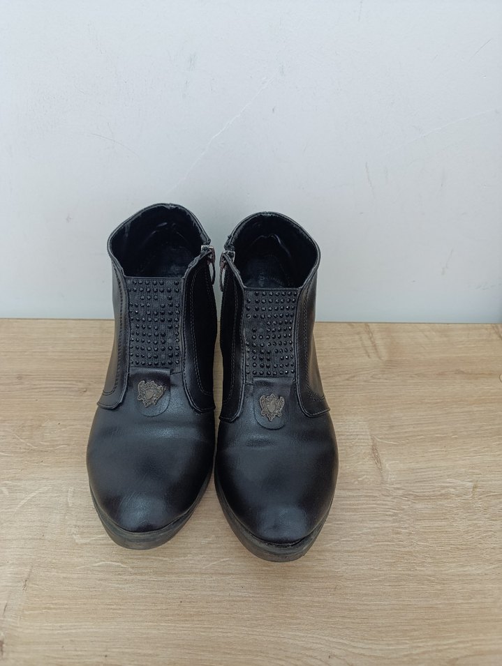 Siyah kadın botları, blok topuk ve tokalı detaylarla, dayanıklı kauçuk malzemeden günlük kullanım için uygun. Minimalist gotik tarzda, trend günlük kombinlere uyum sağlar.