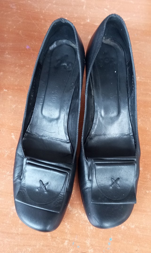 Kadınlar için siyah, lastik malzemeden, tokalı ve blok topuklu klasik ayakkabılar. Ofis için uygun, gotik Paris tarzında.