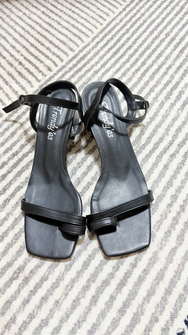 Siyah tokalı bilek bantlı, blok topuklu kadın sandalet. Minimalist goth tarzıyla günlük kullanıma uygun. kadeh topuk hiç kullanılmadi