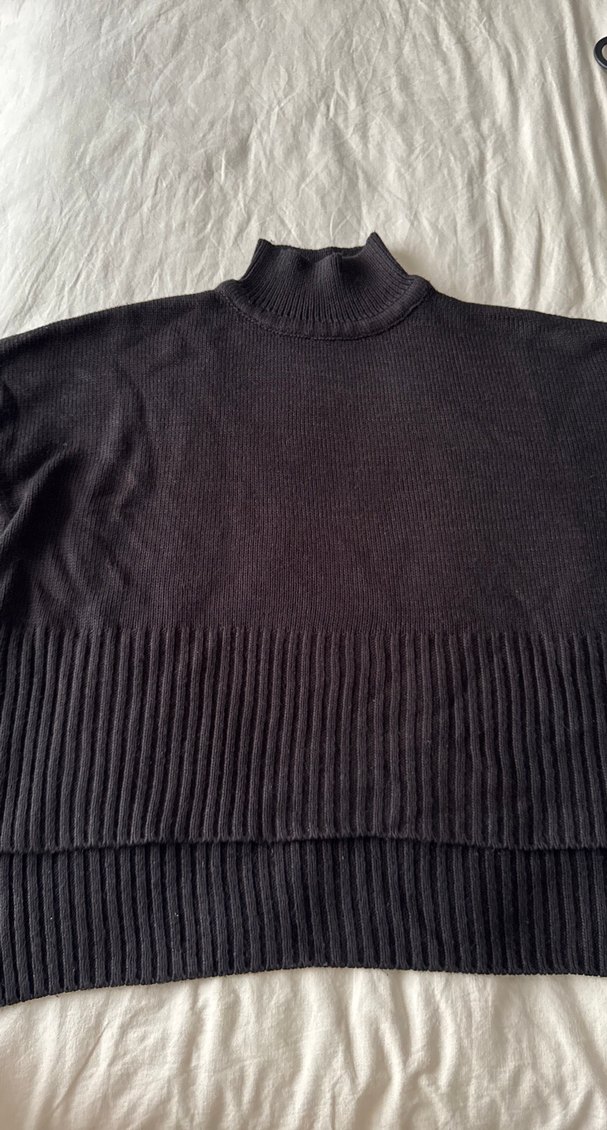 Kadın siyah triko balıkçı yaka kazak, örgü dokulu ve uzun kolludur. Rahat kesim. Günlük kullanıma uygundur.