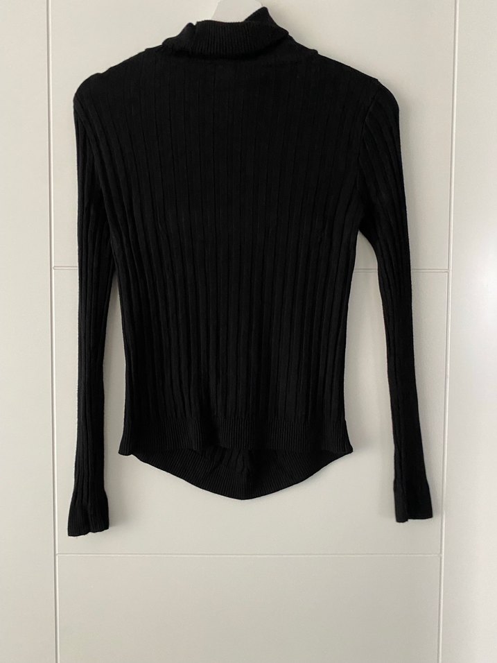 Yumuşak keten kumaştan, boğazlı ve uzun kollu, vücuda oturan siyah triko kazak. Rahat ve sade normcore tarzıyla günlük kullanıma uygundur.