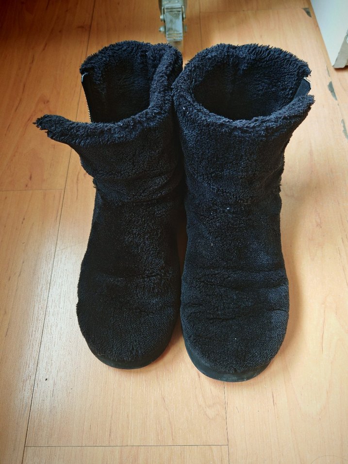 Yumuşak kürk benzeri kumaştan siyah kadın botları.