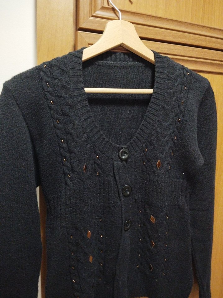Fitted siyah örgü hırka, uzun kollu ve düğmeli ön tasarıma sahiptir. Crew yaka ve midi boyda, günlük kullanıma uygundur. Üç düğmeli. Esnek.