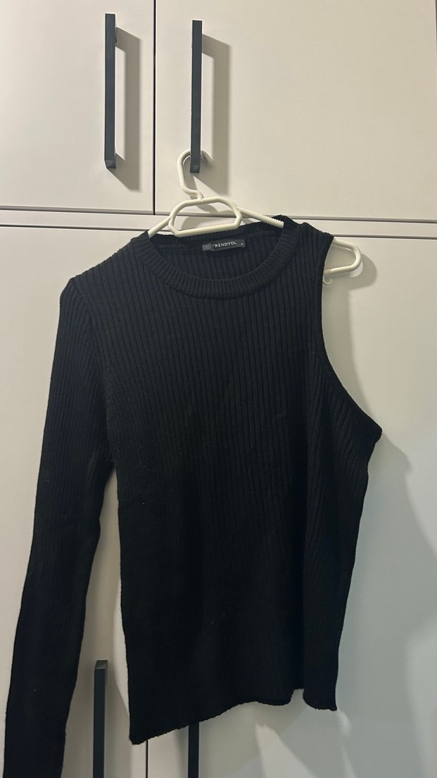 Fitted kesim siyah triko kazak, uzun kollu ve yüksek yakalı, minimalist normcore tarzıyla günlük kullanıma uygun. 3lü takım.