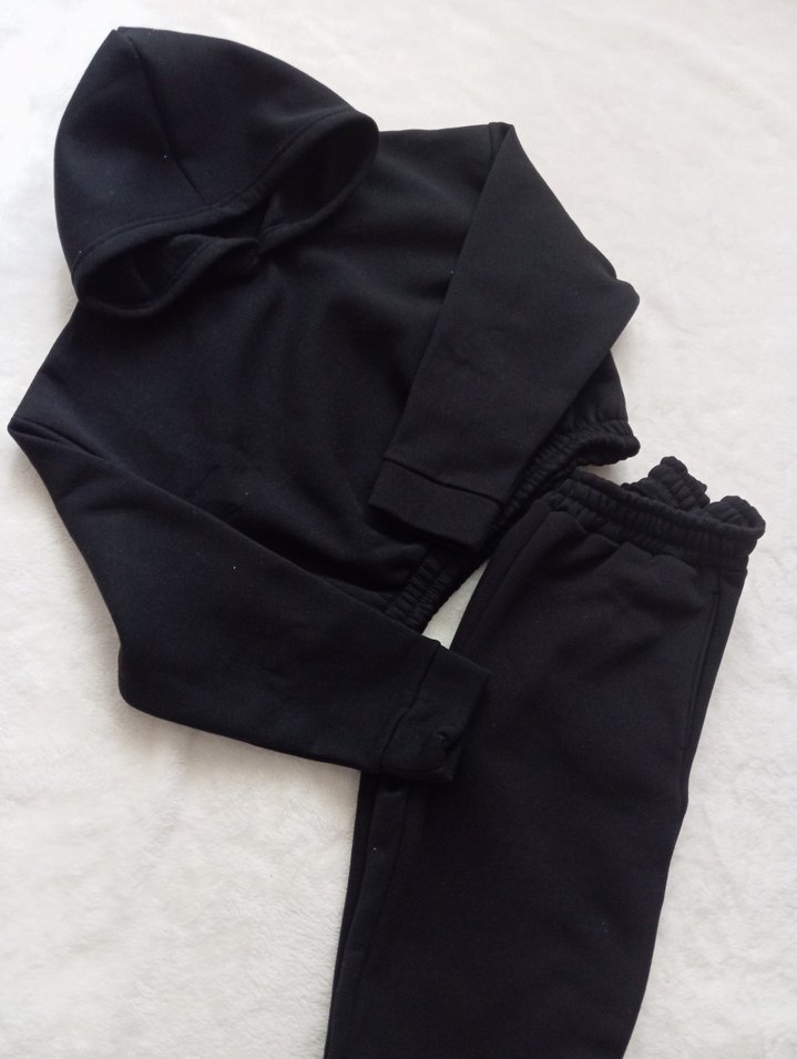 Kadın Siyah üç iplik sardonlu eşofman takımı