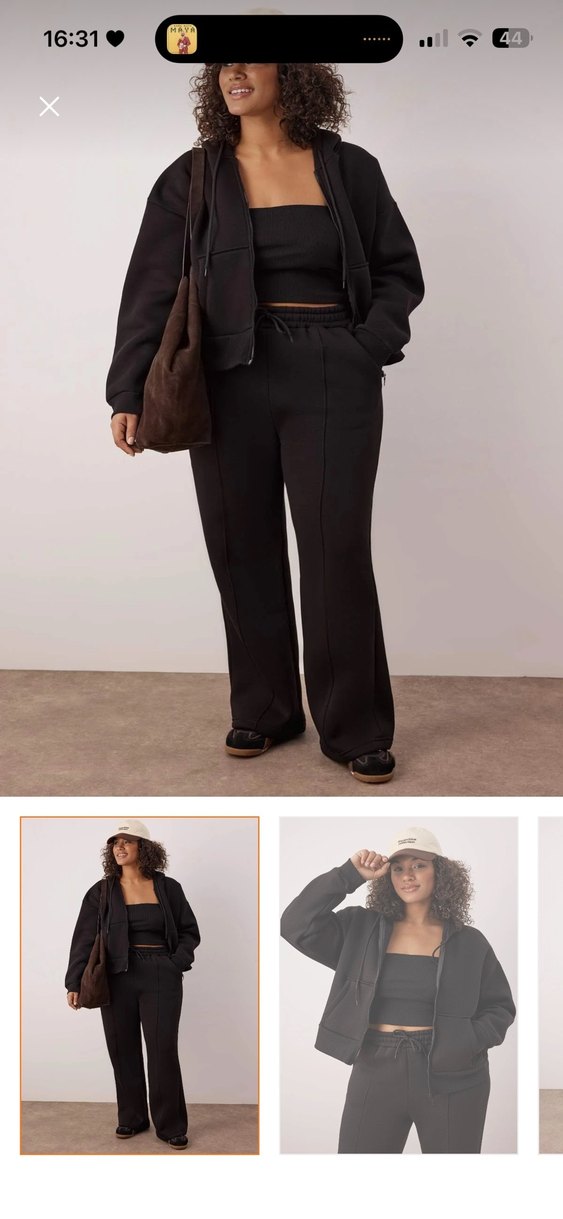 Siyah üçlü iç polarlı kapşonlu üçlü takım eşofman ceket büstiyer