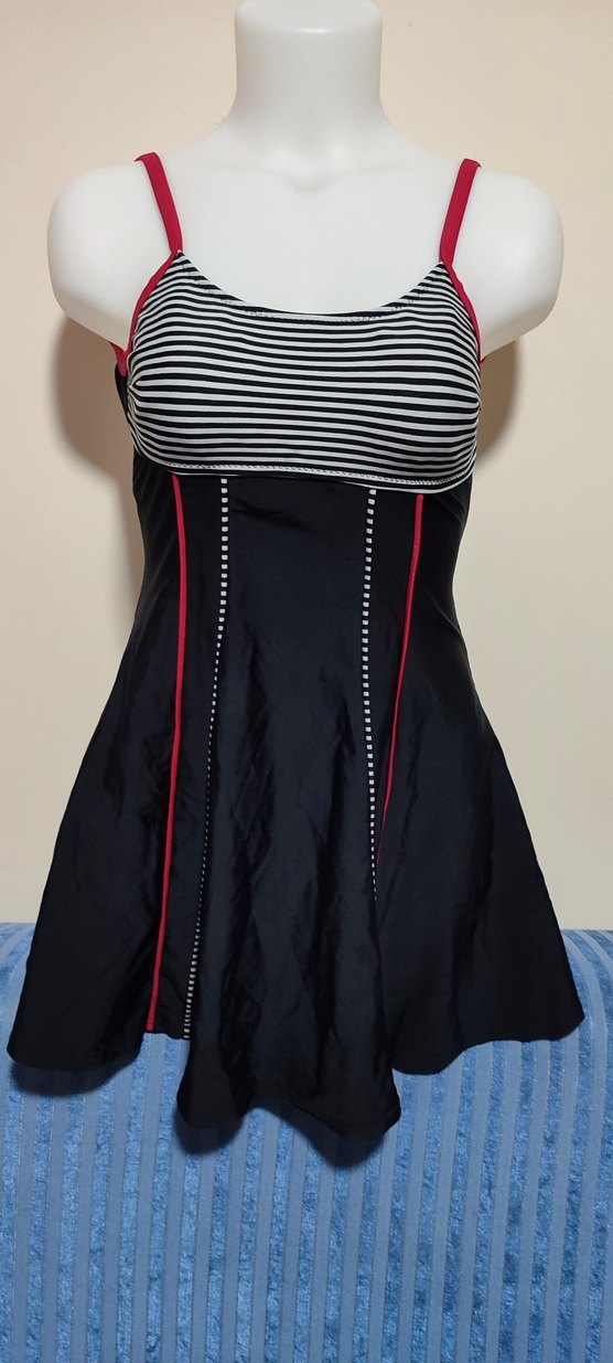 #Mayo Kadınlar için tasarlanmış, pileli uzun ve vücuda oturan siyah mayo. Çizgili üst kısmı ve kırmızı detaylarıyla cesur, gotik athleisure tarzını yansıtıyor.