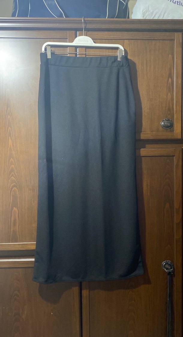 Bu siyah uzun etek, drapeli tasarımı ve regular kesimi ile sentetik kumaştan üretilmiştir. Minimalist, sade tarz için uygundur, ofis kullanımı için idealdir.