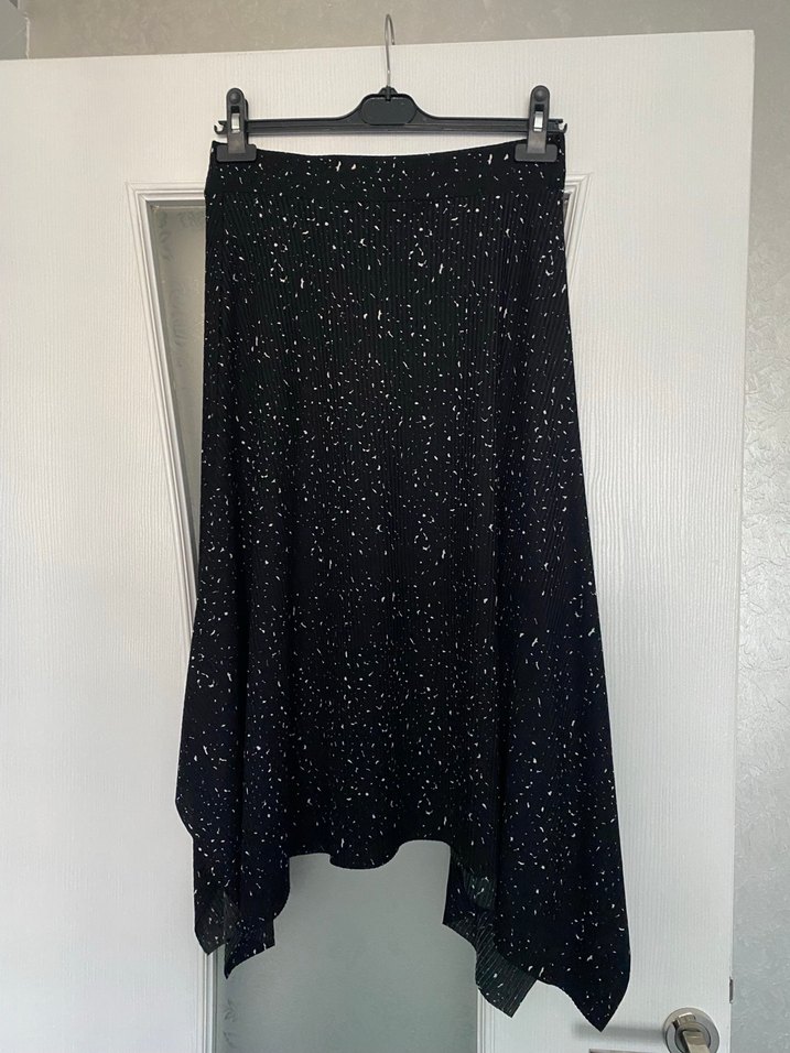 Siyah uzun etek, drapeli tasarımı ve bol kesimiyle, yumuşak sentetik kumaştan üretilmiştir. Avant-garde ve goth stiline uygundur.