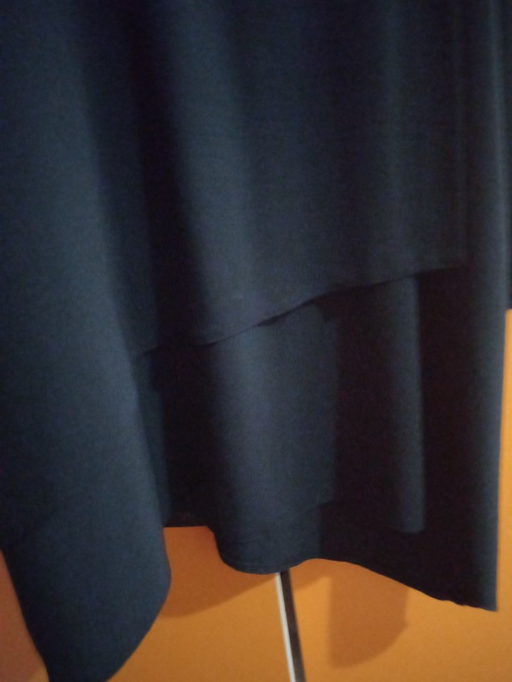 Bu siyah uzun etek, drapeli tasarımı ve bol kesimiyle sentetik kumaştan üretilmiştir. Minimalist, normcore tarzı ofis kullanımı için uygundur.