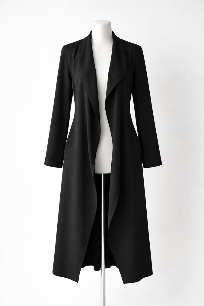 Kadın Siyah Uzun Drapeli Kaban