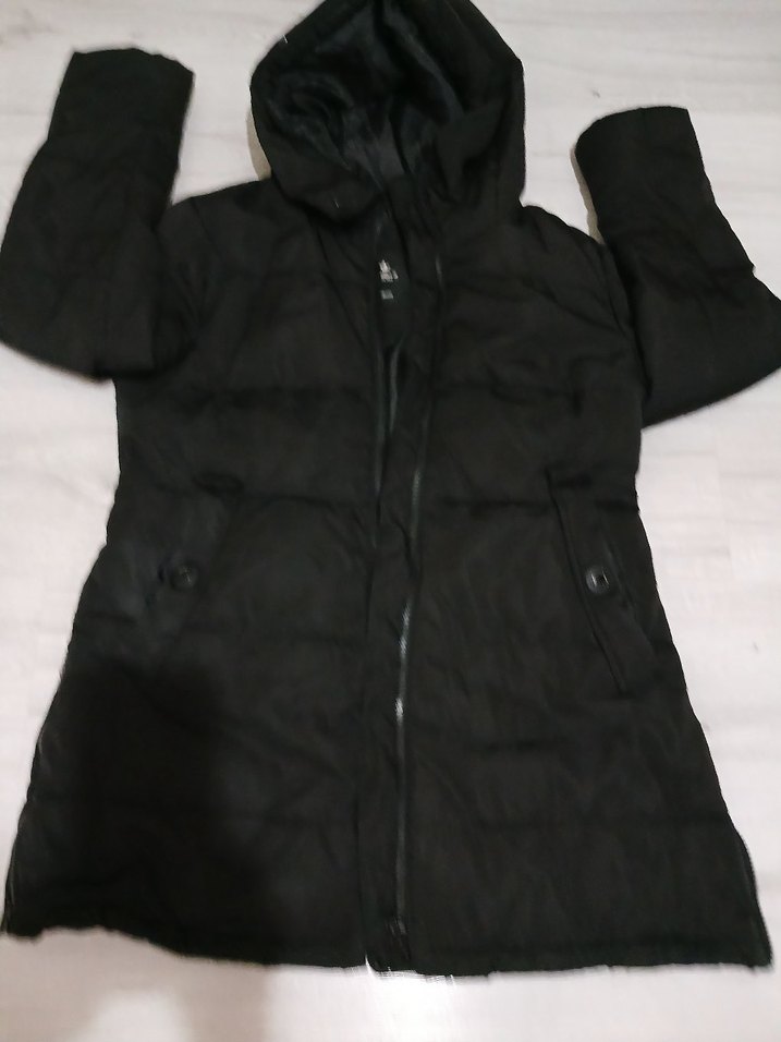 Kadınlar için siyah, uzun kesim, fermuarlı kışlık mont. Yumuşak ve sıcak kumaştan, kapüşonlu ve uzun kollu, dış mekan kullanımı için uygundur. ❄️
